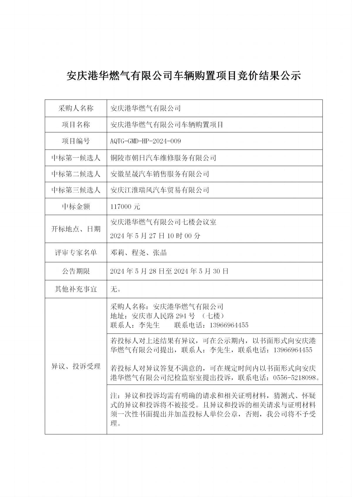 安慶港華燃?xì)庥邢薰拒?chē)輛購(gòu)置項(xiàng)目競(jìng)價(jià)結(jié)果公示